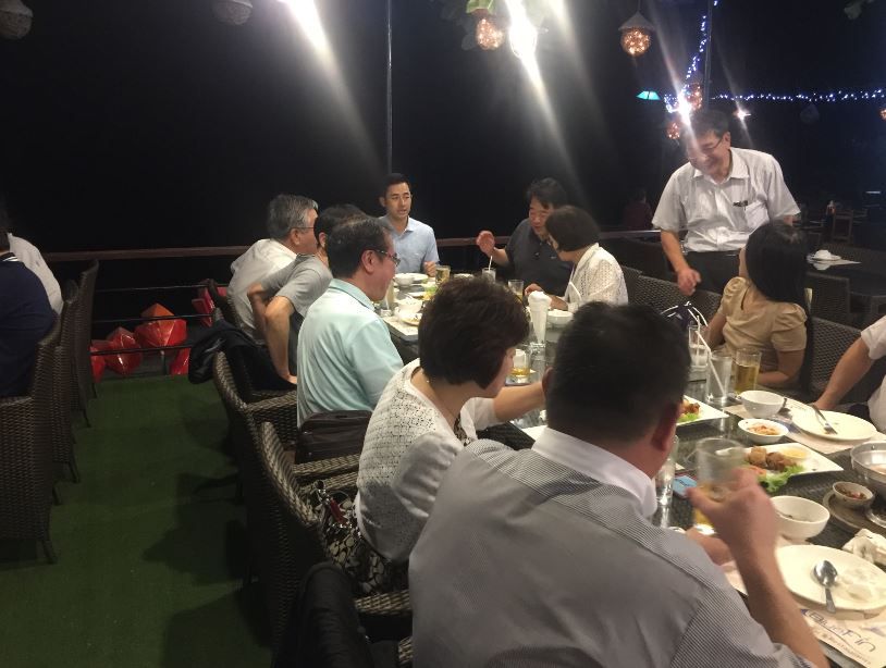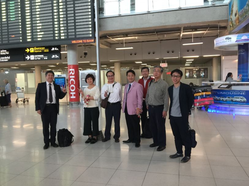 本日から21日まで、タイに出張に来ております。 これは、佐久市が行っている事業で、タイのチョンブリ県サンスク町に高齢者ケアの技術協力を行う事業の一環で、1/19~20に、サンスク町のプラハ大学病院にて、「ヘルスフェスティバル」のイベント内にて、出展を行うためで、弊社もこちらの事業で「THE WALKING」を出展させていただくために同行をさせていただいております。 通常の出展の出張と決定的に異なるのは、「佐久市長御一行様と一緒」ということです。 180117_バンコク空港 ちなみに、上の写真が本日同じ便でタイに渡航したメンバーでスワンナプーム国際空港(バンコク国際空港)到着時に撮影した記念写真です。 真ん中でピンク色のジャケットを着ておられるのが、佐久市の柳田市長様です。 一緒の便に乗ったのは7名ですが、既に3名の方が先行で来られておりましたので、10名のチームとなりました。更に明日、4名後から来られますので、日本からのメンバーは総勢14名となります。 バンコクに現地時間15:30ごろ到着し、サンスク町のホテルには現地時間17:30ころ到着しました。 その後、サンスク町の町長、Narongchai様に夕食のご招待をいただきました。(町の費用でなく、個人でご招待いただいたそうです。) 「佐久市様御一行」で同行させていただいたからこそできた、貴重な体験でした。 180117_歓迎会 上の写真は夕食の様子です。真ん中の「お誕生席」に座っておられるのがNarongchai町長様です。 佐久市の柳田市長もお若いですが、Narongchai町長様もお若い方で、びっくりいたしました。 180117_レストランからの光景 ご招待いただいたレストランから見える、浜辺の様子です。 とても素敵なところでした。 ーー これだけ書いていますと、遊びに行っているように見えてしまいますね。 明日が準備で、19日からがフェスティバル本番です。 今度は仕事をしている様子をちゃんとご紹介します。 (岡田 恵也)